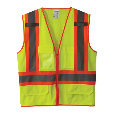 Yellow Class 3 Surveyors Vest with 2 Tone Striping and zipper